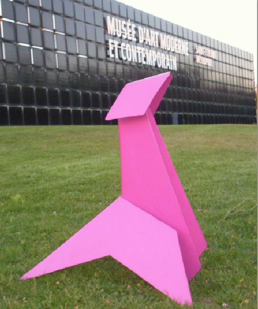 His most famous sculpture is undoubtedly « Pink Seal », this Origami who made an